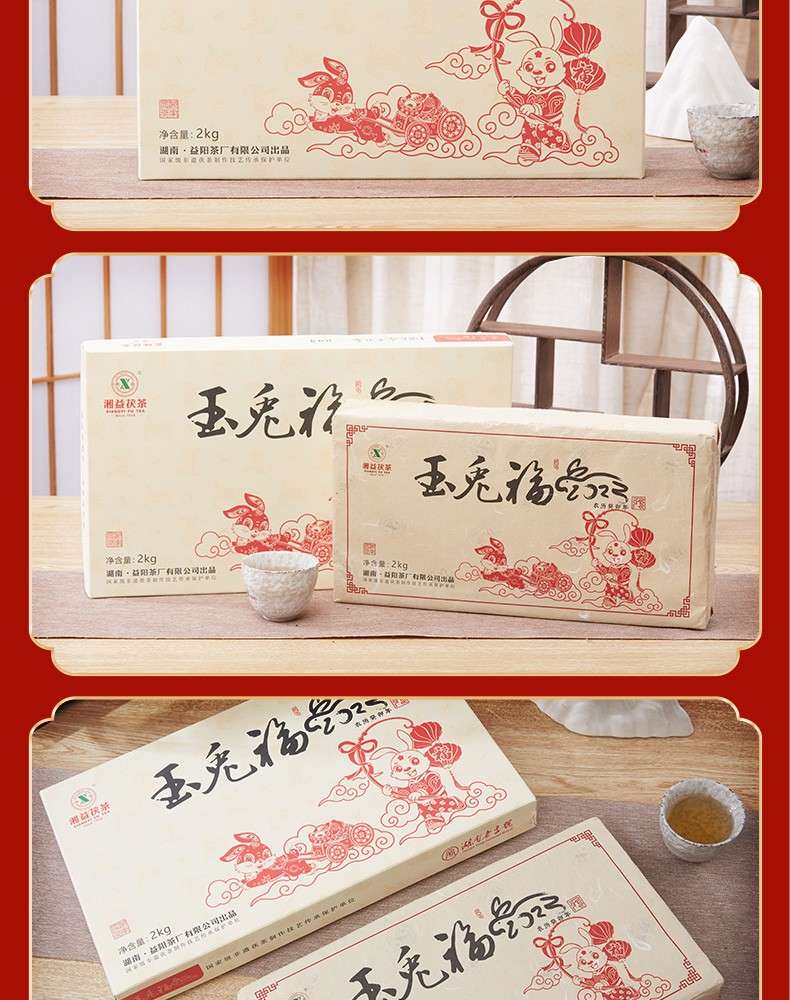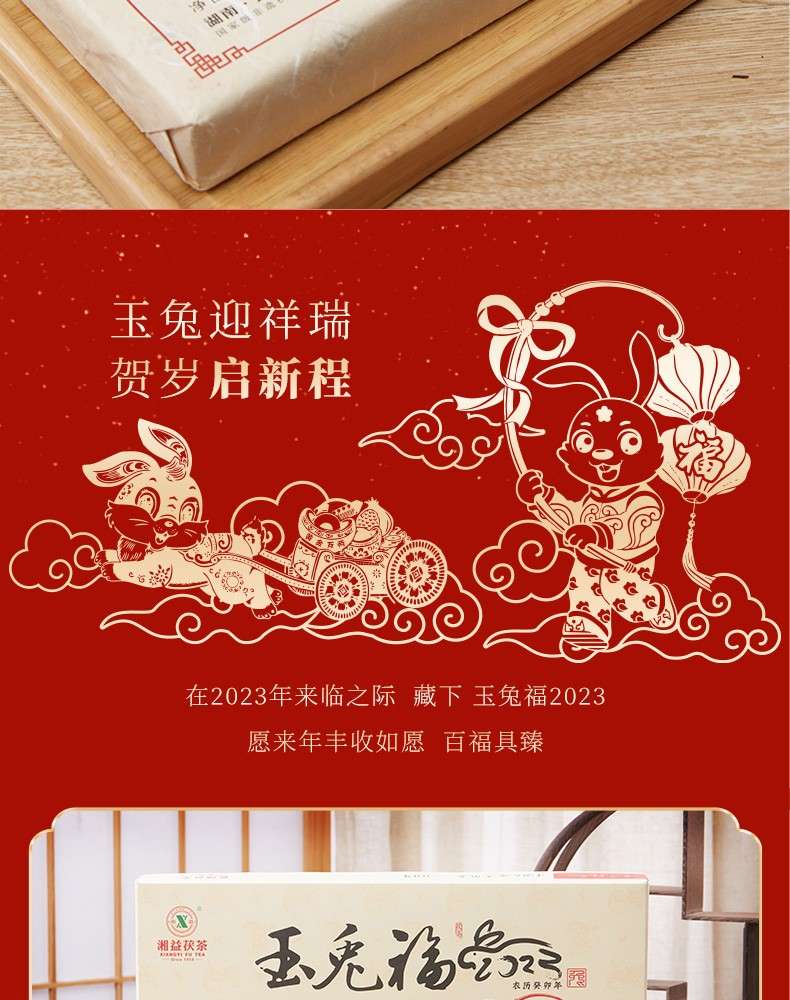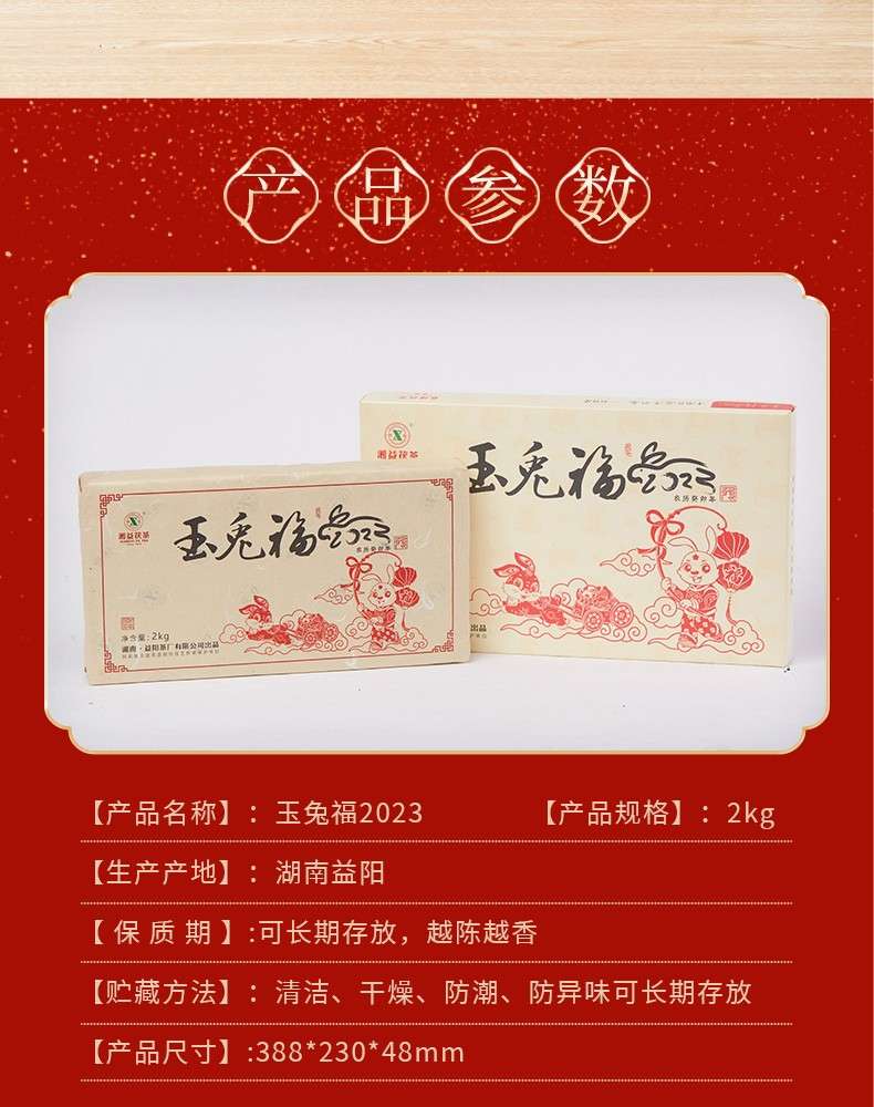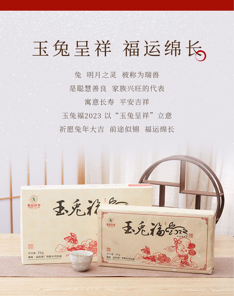 湘益獲茶2023年兔年生肖紀念茶玉免福2kg湖南正宗安化黑茶獲磚茶